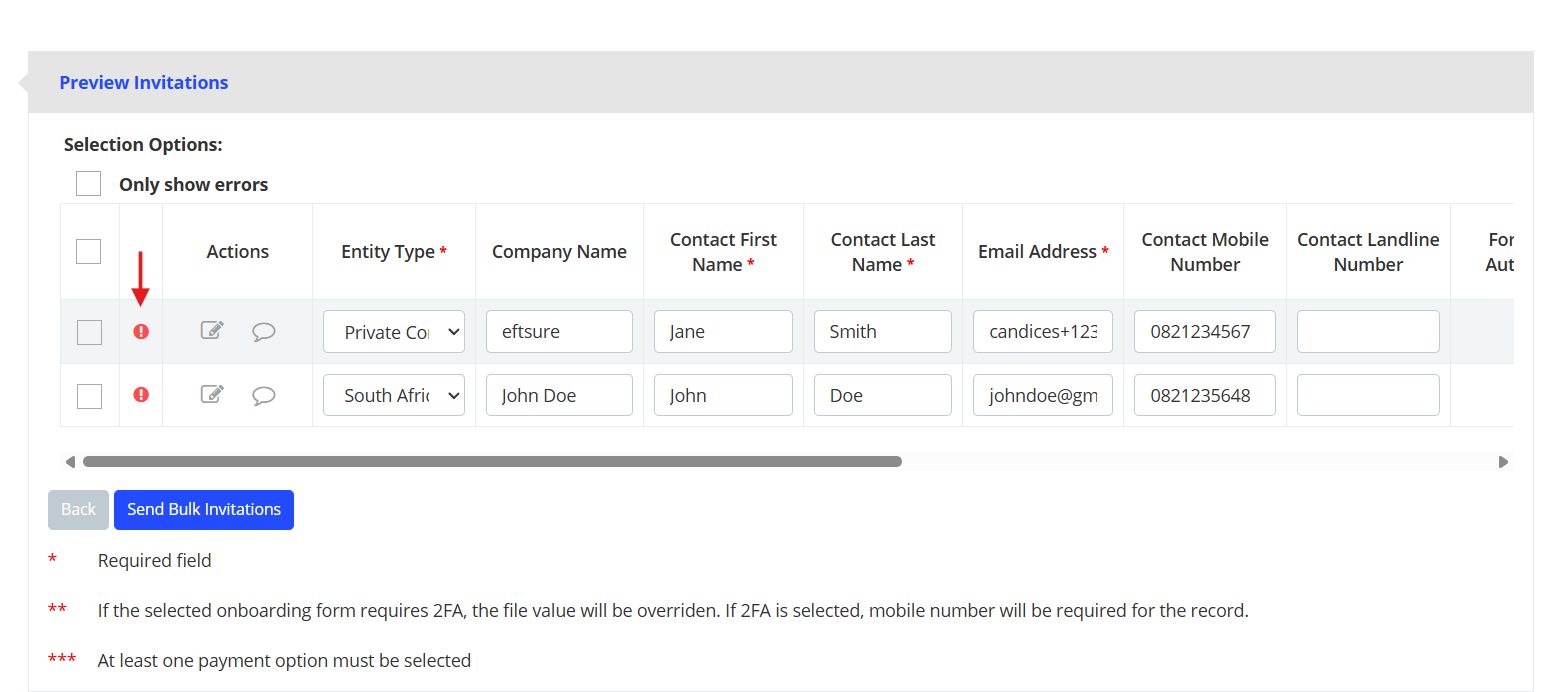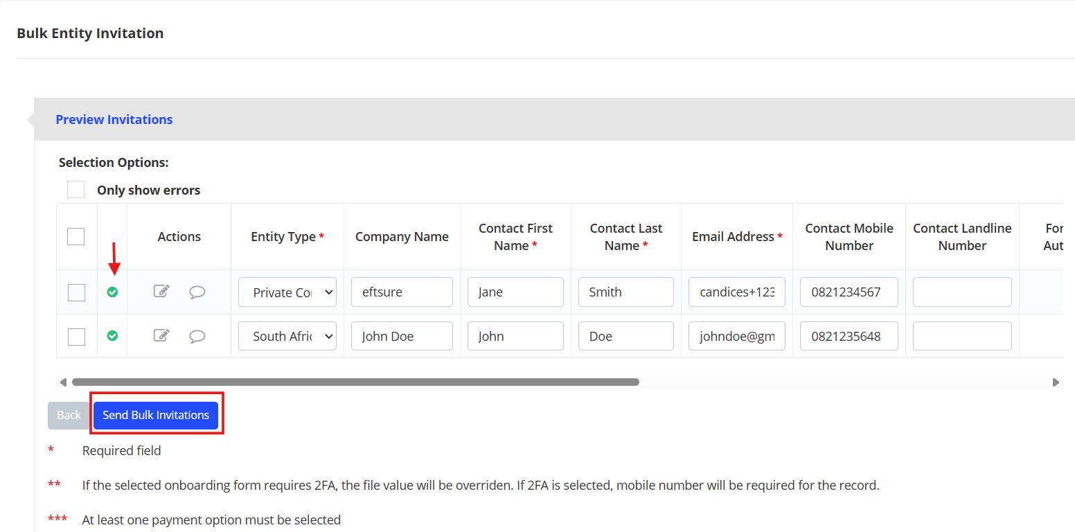 - When you’re satisfied with the data, click "Send Bulk Invitations".