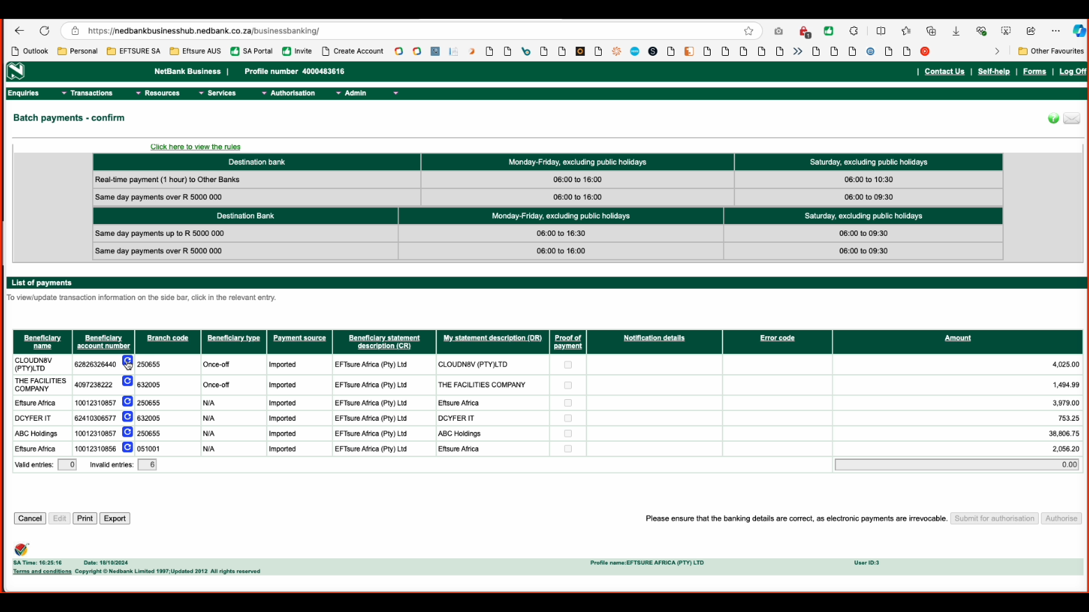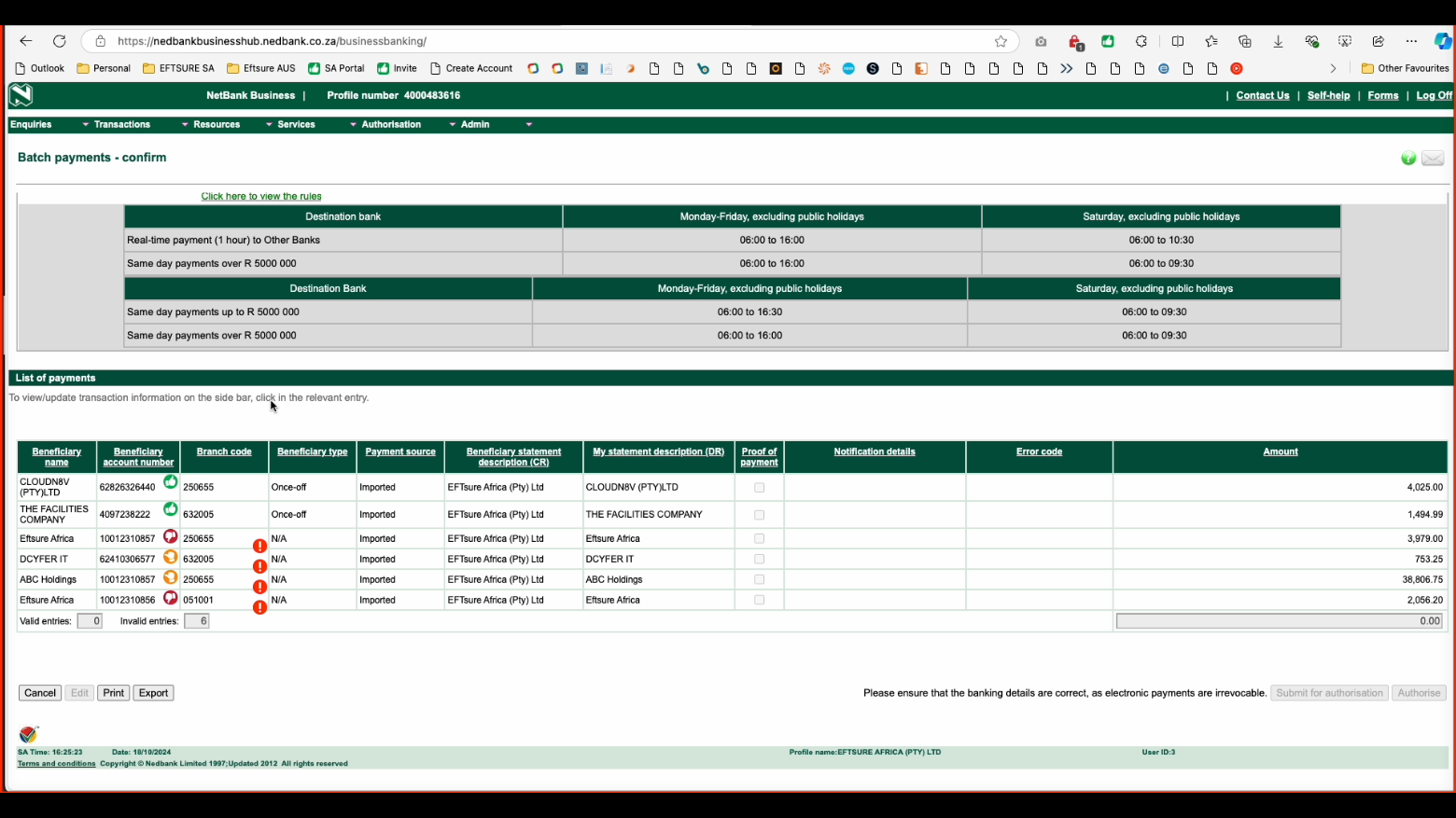 - Red Thumb: Information mismatch with the master data list in your eftsure portal. Review this information before processing any payments.